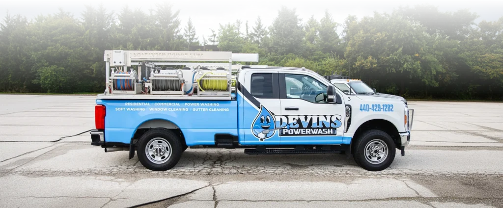 Devins Powerwash handles exterior cleaning in Cleveland differently than most, not just with better equipment, but with a method-first approach that matches the process to the surface. We use low-pressure soft washing on siding, roofs, fences, and decks where aggressive rinsing would do more harm than good, and high-pressure surface cleaning on concrete driveways and hardscapes that need it. We’re insured and bonded, and we document every job with before-and-after photos, pre-existing condition notes, and a call to you when our crew is on the way. If you’re home, we walk the property with you at the start and again when we’re done. We don’t send a bill until you’re satisfied.